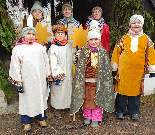 Z domjacym nadawkom wróćichu so wjetši a mjeńši wopytowarjo hodowneje hrě w Róžeńće patoržicu popołdnju z Božeho domu. W inscenaciji tónraz předstajichu, kak dźěći kralow z rańšeho kraja wulkej hwězdźe sćěhowachu.