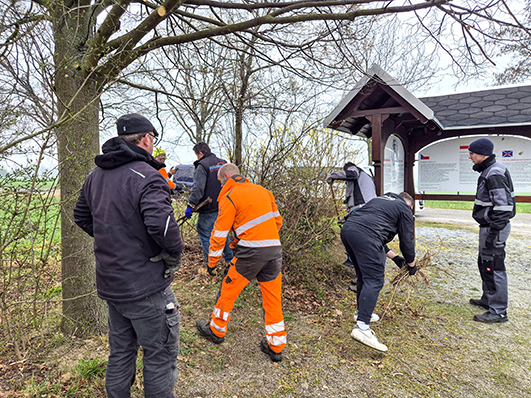 Radiborer Osterreiter haben sich am Millenniumsdenkmal der heiligen Cyrill und Methodius bei Strohschütz getroffen. Dort haben sie verschiedene Arbeiten verrichtet.